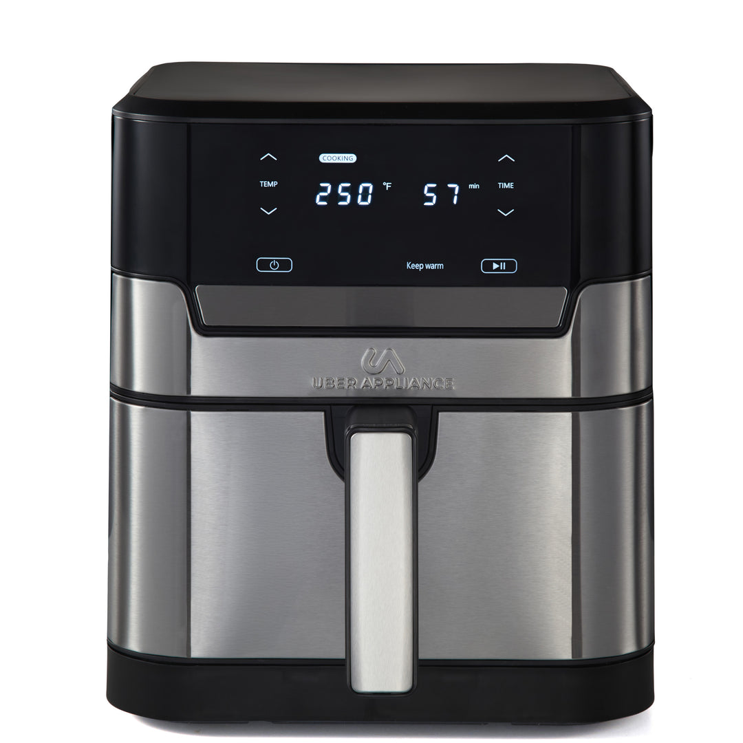 The modern stainless steel look of the Uber Appliance Air Fryer sets it apart from the competition. The user friendly digital display, whisper quiet operation and dishwasher safe large 5 Quart basket make it the best air fryer on the market.